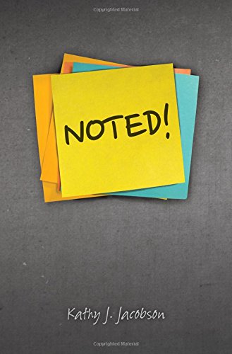 Kathy Jacobson, writing through the adult life of Jillian, has brilliantly interwoven the dynamics of conflicted family relationships, dysfunctional courtships and marriages, and personal risktaking! Jillian shares her faith honestly and openly as she seeks support from God through daily prayer for herself and others. Each of the characters' true-to-life struggles quickly bring the reader to our own reality, as we tend to join Jillian's quest for a new adventure, and for a partner who is "kind, notices things and listens to me when I speak." Could she possibly take the risk to love again? Men and women, alike, will recognize their own struggles reflected in NOTED! --Nancy Fulton Young, Psychologist, Marriage and Family Therapist, and Mediator Madison, Wisconsin